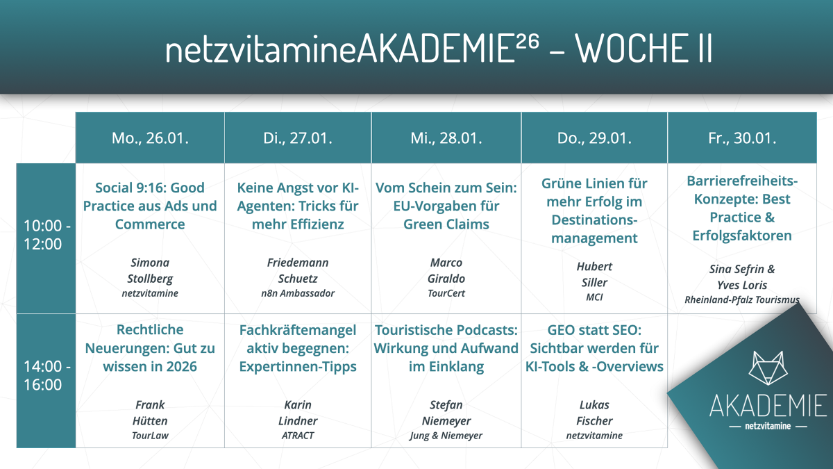 netzvitamineAKADEMIE-WOCHEN: 19. BIS 30. JANUAR 2026