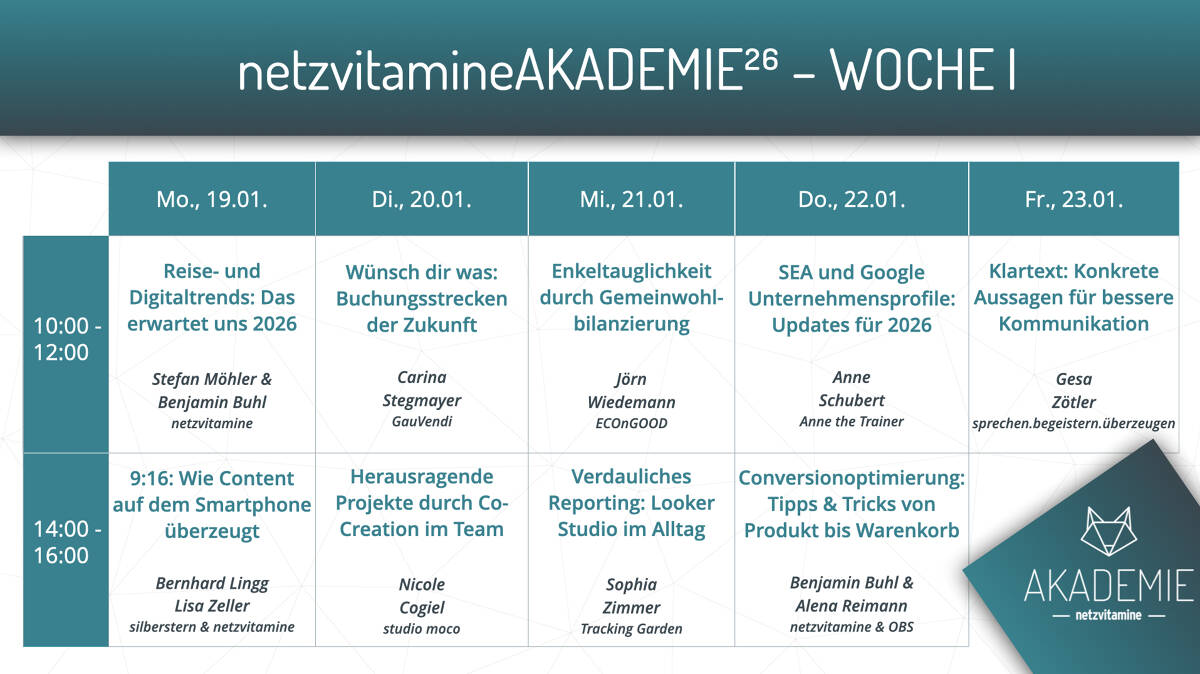 netzvitamineAKADEMIE-WOCHEN: 19. BIS 30. JANUAR 2026